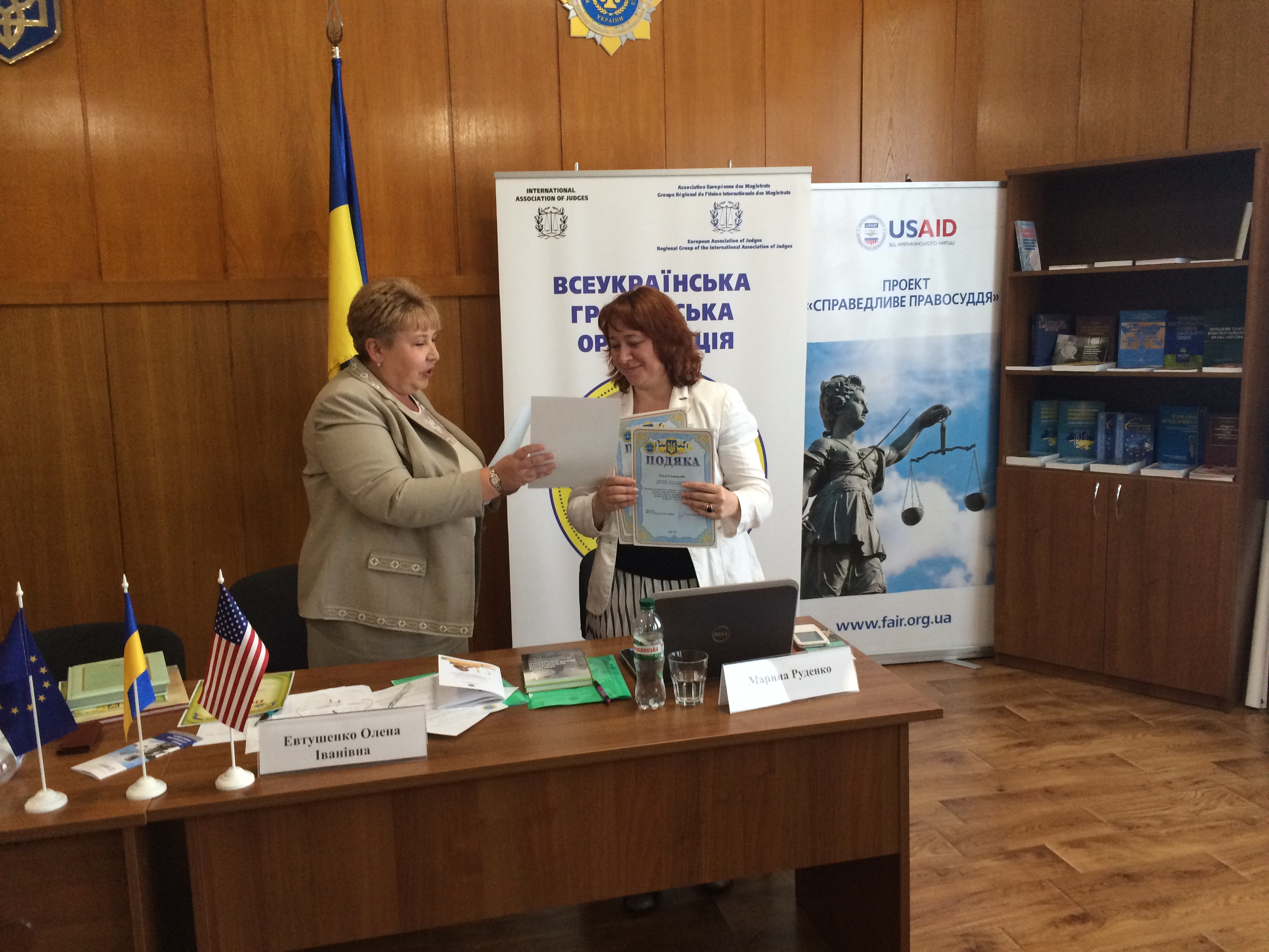 Президент Асоціації суддів України оголосила подяки організаторам Проекту USAID «Справедливе правосуддя» та його активним учасникам, висловила найщиріші сподівання та наміри про продовження спільної роботи у майбутньому.